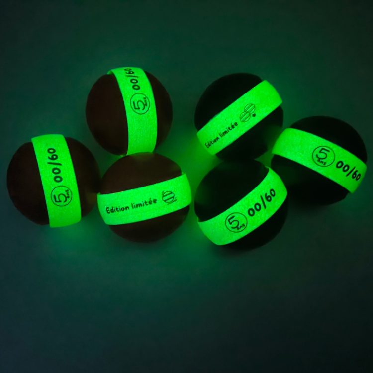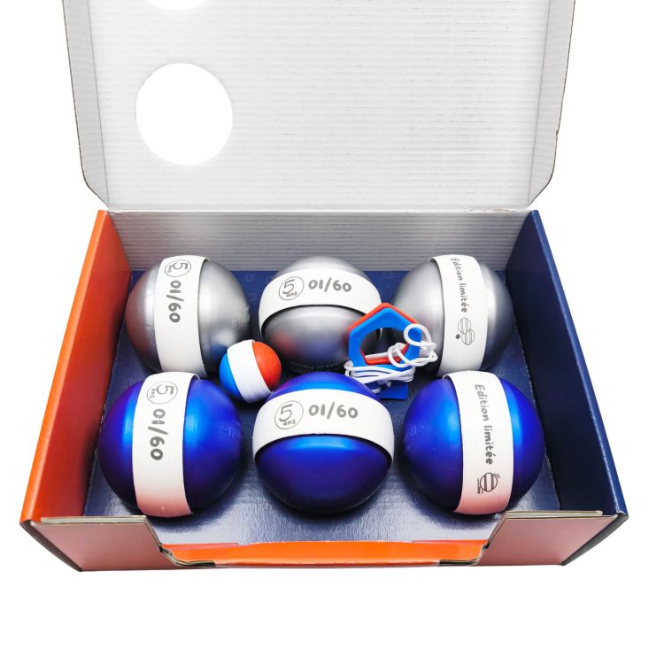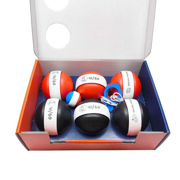 Un coffret 6 boules composé de 2 triplettes phosphorescentes numérotées, un cochomou, un sac de transport et un mesureur offert.